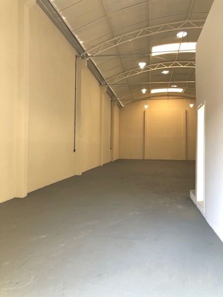 Pé direito com 6 mts de altura, escritório, 02 banheiros e estacionamento.