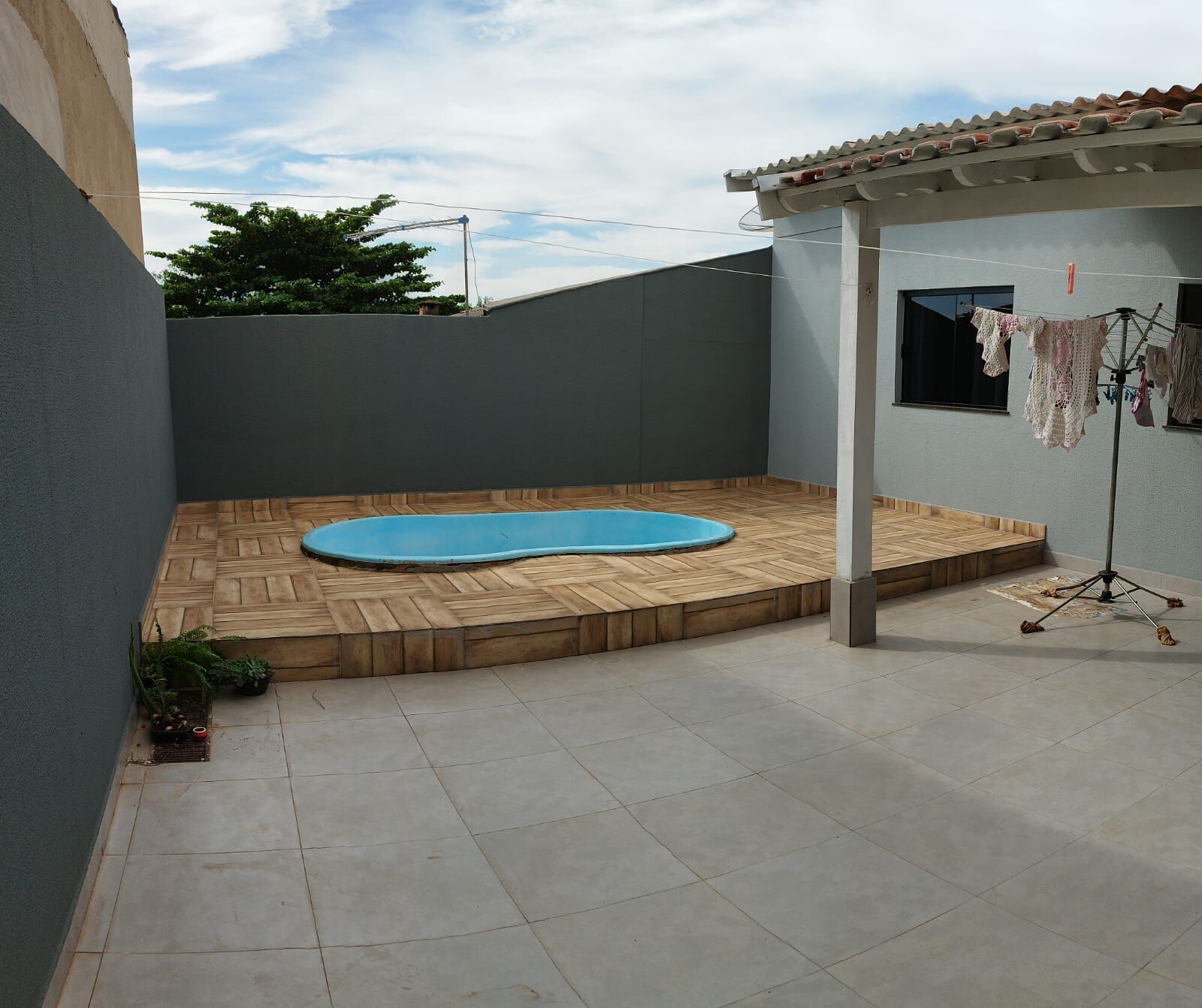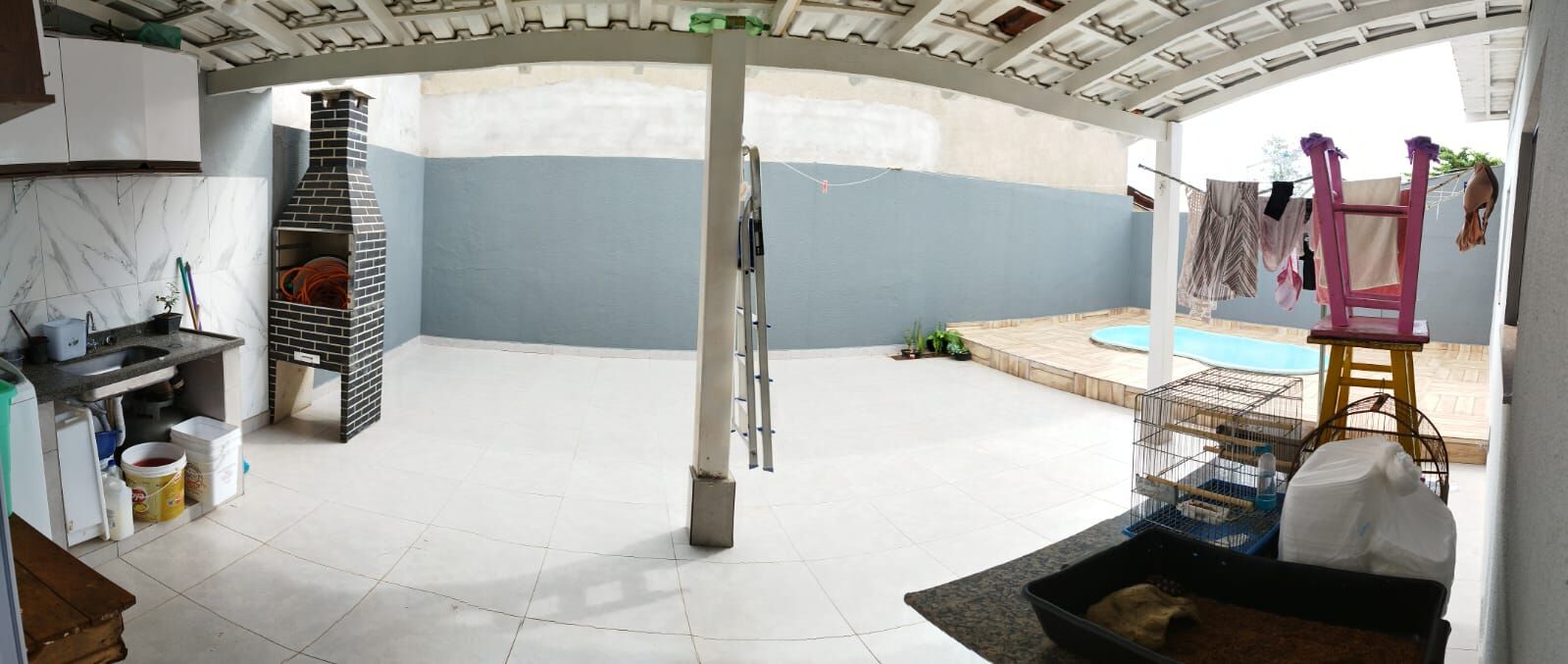 Casa com 03 quartos (sendo um suíte), sala, cozinha, lavanderia coberta, bwc social, área de lazer com churrasqueira, piscina para criança e garagem para 2 carros